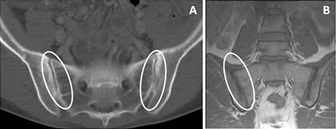 La sacroileítis radiológica (inflamación de la articulación situada entre el hueso sacro y el ilíaco) silente o asintomática, está presente en un 20% de los pacientes con EII. La prueba diagnóstica básica en estos caso es la radiología de pelvis y en algunas ocasiones, la resonancia magnética (RM) (Imagen 1).