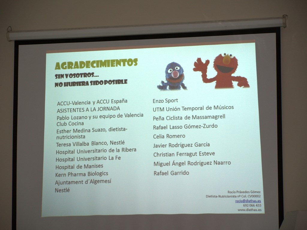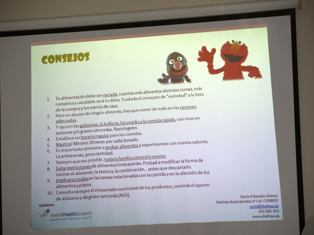 En primer lugar tuvimos la conferencia sobre los alimentos, proporcionado por la dietista-nutricionista Rocío Práxedes Gómez.